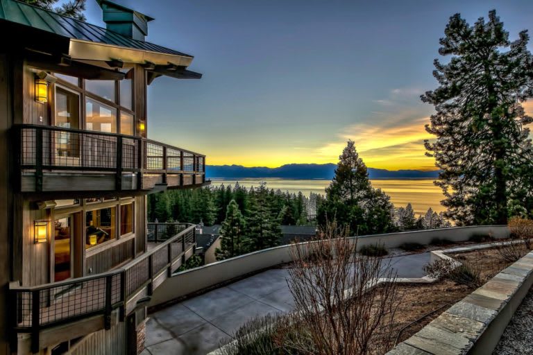 This beautiful modern home features a fantastic lower Cave Rock location with spectacular lake views. Level access is provided from the upper parking pad through a grand double-door entry, opening to a spacious top floor living area with dramatic open wood beam cathedral ceilings and oak hardwood floors framing stunning southwest facing panoramic lake views. Offered at $3,125,000. Click here to take the virtual tour.