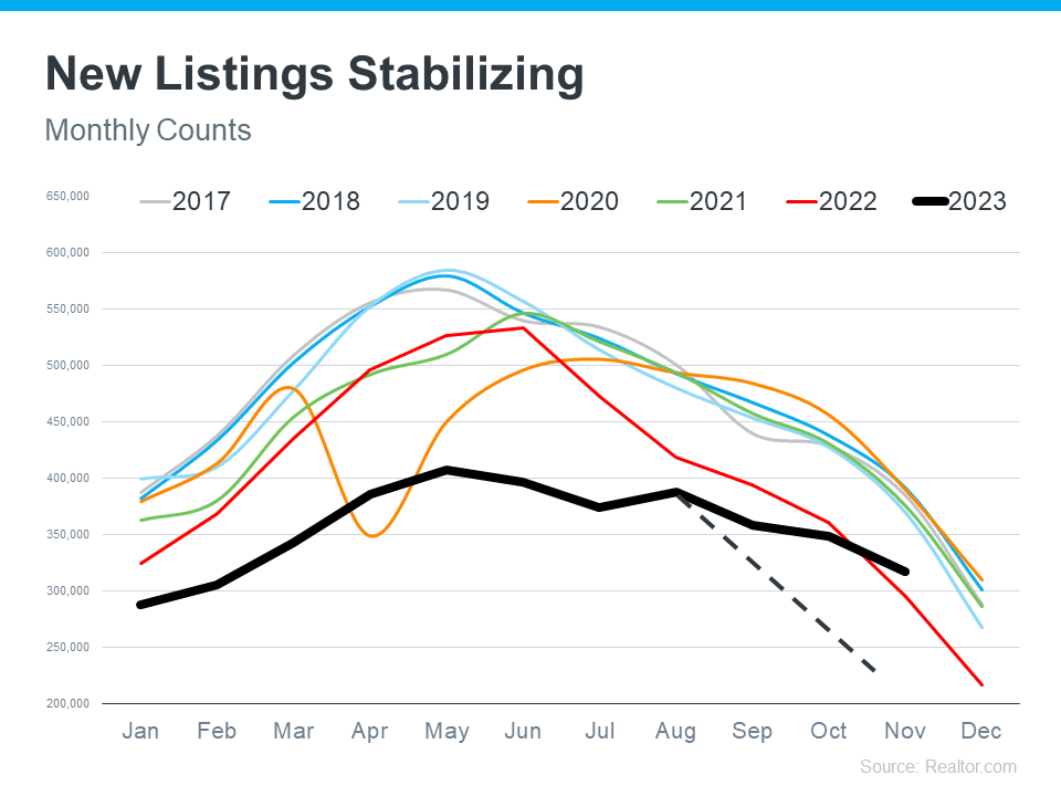 For buyers, new listings stabilizing is a positive sign. It means you have a more steady stream of options coming onto the market and more choices for your next home than you would have at the same time last year. This opens up possibilities and allows you to explore a variety of homes that suit your needs.